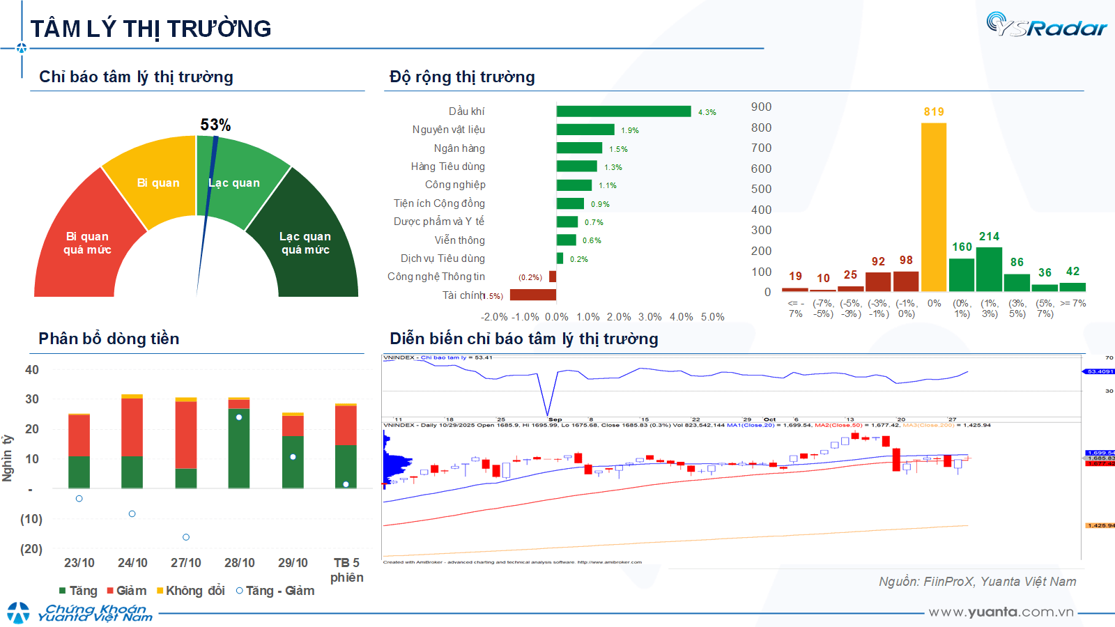 Yuanta Việt Nam cho rằng, thị trường có thể sẽ tiếp tục đà tăng trong phiên kế tiếp và chỉ số VN-Index có thể sẽ thử thách lại ngưỡng kháng cự 1,721 điểm.