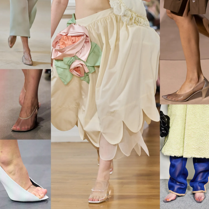 Bên cạnh đó, giày làm từ chất liệu trong suốt cũng thu hút sự quan tâm. Nếu trước đây phong cách “mặc như không” thường gắn với hình ảnh táo bạo của người nổi tiếng như Chappell Roan hay Kim Kardashian, thì nay xu hướng này được tiết chế hơn qua những đôi giày khoe khéo bàn chân. Chất liệu nhựa mềm hoặc vải mỏng giúp tôn lên vẻ thanh thoát, đồng thời tạo hiệu ứng thị giác mới mẻ mà vẫn giữ được sự kín đáo.