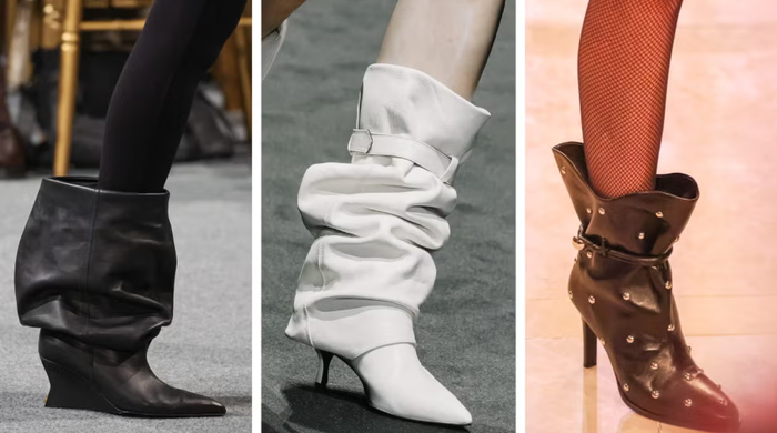 Balmain và Aniye Records tạo sự cân bằng bằng cách phối kiểu boots này với áo khoác sắc sảo và trang phục có đường viền hẹp. Ngược lại, Isabel Marant lại tận dụng độ mềm của ống boots để kết hợp cùng váy midi và quần ống rộng, mang đến vẻ phóng khoáng đầy tinh tế.