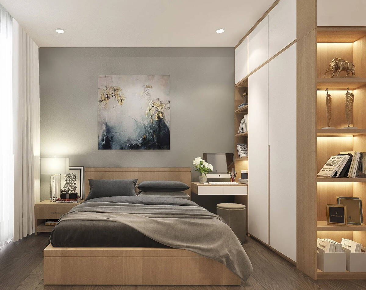 Ánh sáng được đặt để tôn vinh vật liệu: một vách gỗ đầu giường sẽ ấm áp hơn khi có ánh đèn hắt nhẹ từ phía sau; một bề mặt nỉ hay đá trang trí sẽ trở nên sống động khi được chiếu xiên bằng nguồn sáng mềm. Nhờ đó, phòng ngủ không chỉ là nơi để ngủ, mà còn là một không gian mang dấu ấn cá nhân rõ rệt.