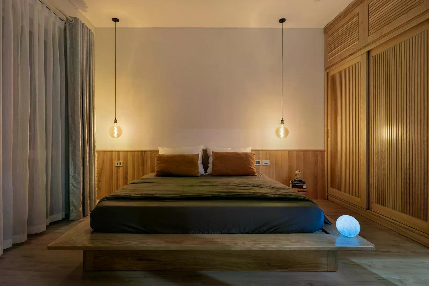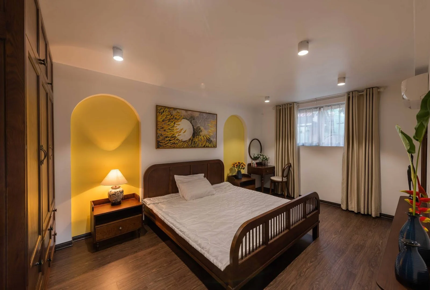 Đi kèm với đó là hệ công tắc dimmer hoặc đèn nhiều mức sáng, cho phép người dùng “chỉnh” phòng ngủ theo từng khoảnh khắc trong ngày. Buổi tối có thể là ánh sáng vàng nhạt dịu dàng, nhưng sáng sớm chỉ cần tăng nhẹ độ sáng để không gian tỉnh táo hơn mà vẫn không gây chói.