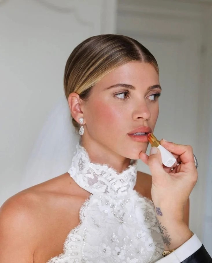 Có thể kẻ thêm viền để định hình đôi môi, đồng thời tạo thêm chiều sâu và độ đầy đặn. Hoặc không muốn viền thì tán đều son cho mịn và dùng thêm son bóng để tạo hiệu ứng căng mọng là đã đủ hoàn hảo. Môi màu nâu nhạt có độ trầm lắng, kết hợp với phấn mắt màu đồng và phấn má tông ấm để tạo hiệu ứng đồng nhất và sang trọng hơn.