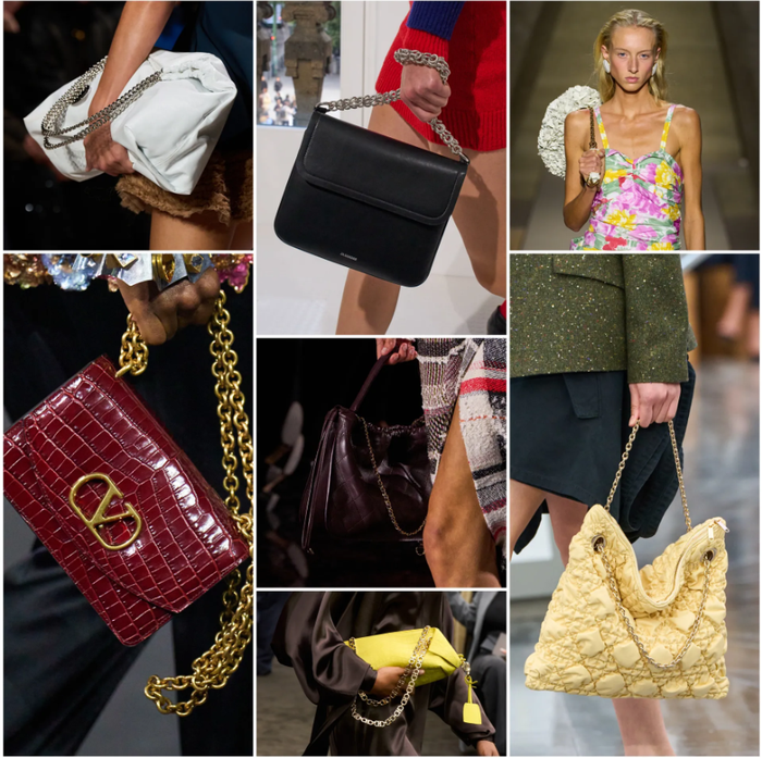 Dây xích vốn không phải chi tiết xa lạ trong thế giới túi xách cao cấp. Ngay từ năm 1955, các thiết kế nắp gập của Chanel đã ứng dụng chi tiết này như một điểm nhấn đặc trưng. Tuy nhiên, chỉ khi xu hướng này trở lại mạnh mẽ và xuất hiện dày đặc trên sàn diễn, dây xích mới thực sự tạo nên dấu ấn rõ nét trong mùa mốt.