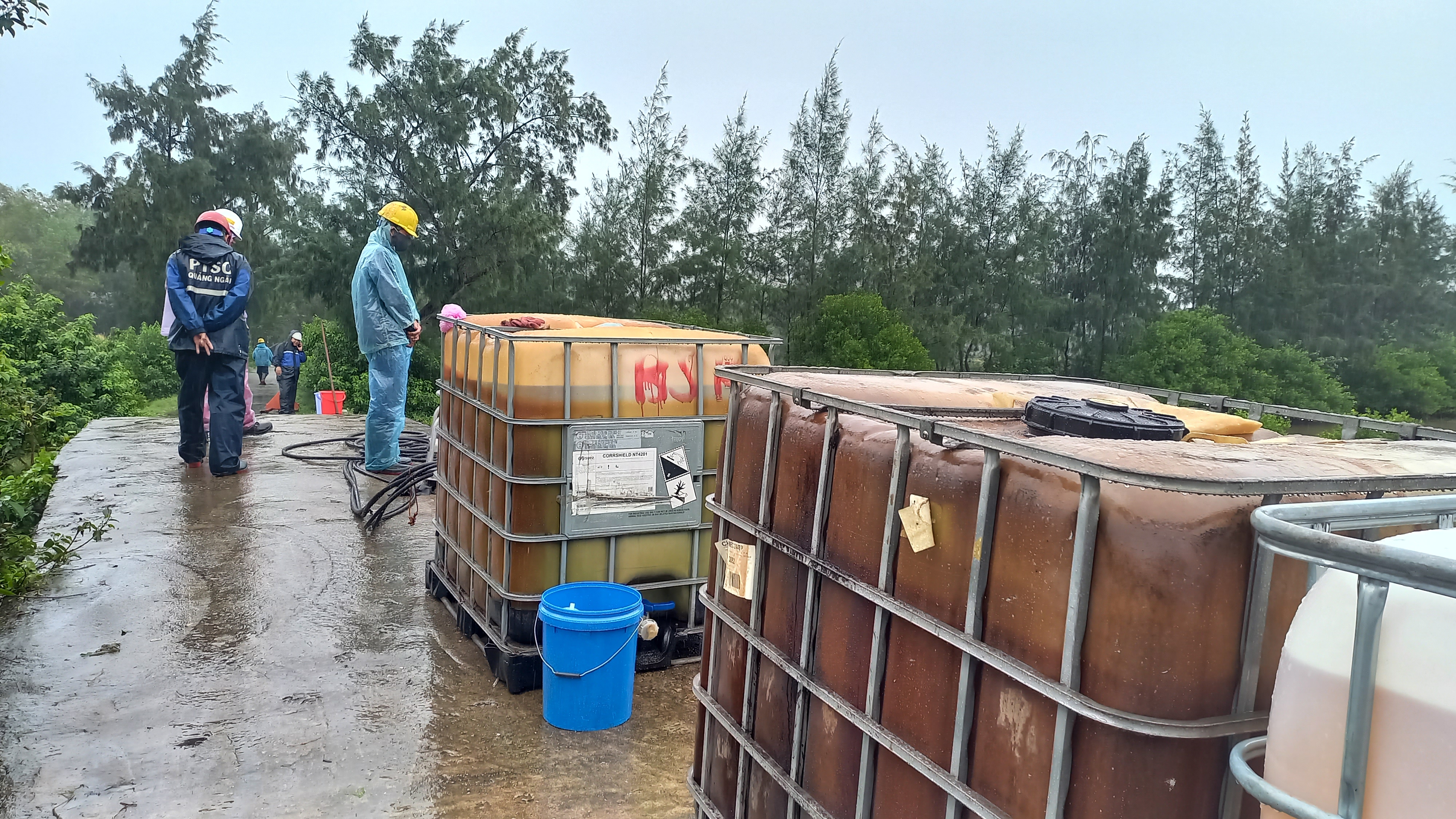 Trong ngày 26-12, Phân kho 85/Kho 182 và Công ty cổ phần Dịch vụ Dầu khí Quảng Ngãi PTSC, cùng với các lực lượng của địa phương xử lý dầu tràn, ngăn chặn, khắc phục sự cố, hạn chế tối đa việc ảnh hưởng lan rộng (dùng phao gom dầu và giấy thấm).