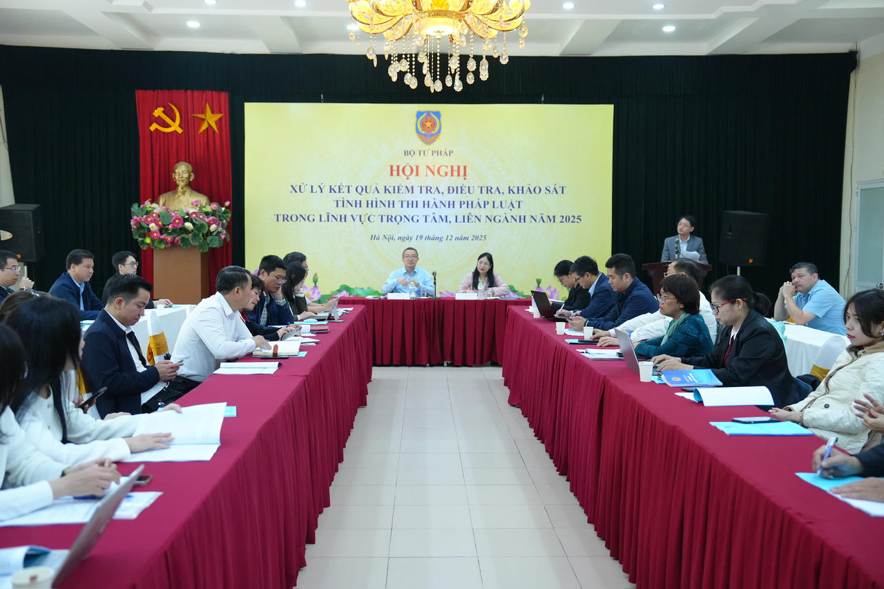 Cục trưởng Hồ Quang Huy nêu rõ, năm 2025, Bộ Tư pháp đã tiến hành khảo sát 521 cá nhân và 43 tổ chức về tình hình thực hiện các lĩnh vực trên, nhưng nhận thấy vẫn còn một số nội dung chưa hoàn thiện. Do đó, Hội nghị tổ chức nhằm mục đích đánh giá toàn diện, khách quan về tình hình thi hành pháp luật trong 7 lĩnh vực trọng tâm, liên ngành năm 2025, từ đó đề xuất các giải pháp cụ thể để tổ chức thực hiện hiệu quả hơn trong thời gian tới.