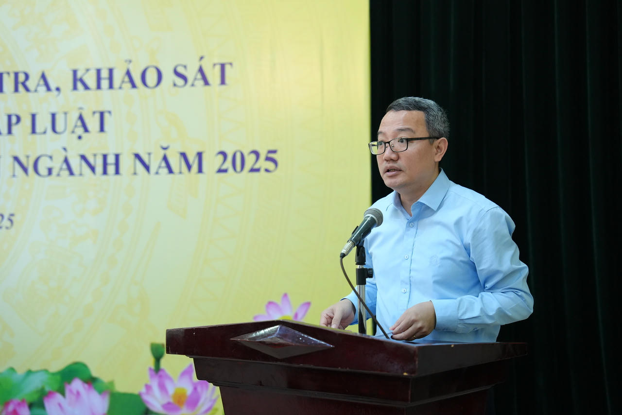 Phát biểu khai mạc Hội nghị, Cục trưởng Cục Kiểm tra văn bản và Quản lý xử lý vi phạm hành chính, Bộ Tư pháp Hồ Quang Huy cho biết, Quyết định số 127/QĐ-TTg ngày 15/01/2025 của Thủ tướng Chính phủ ban hành Kế hoạch theo dõi tình hình thi hành pháp luật trong lĩnh vực trọng tâm, liên ngành năm 2025 xác định 7 nội dung theo dõi gồm: Phòng, chống khai thác bất hợp pháp, không báo cá, không theo quy định; tình hình thi hành pháp luật về cấp giấy phép, cấp chứng nhận quyền sử dụng đất và thu hồi đất; bảo vệ môi trường biển, hải đảo; lập và quản lý hành lang bảo vệ nguồn nước; giao rừng, chuyển đổi mục đích sử dụng rừng; điều kiện bảo đảm an toàn phòng cháy và chữa cháy; tình hình thực hiện các chính sách hỗ trợ người dân, người lao động, doanh nghiệp, hợp tác xã trong bối cảnh hậu Covid-19.