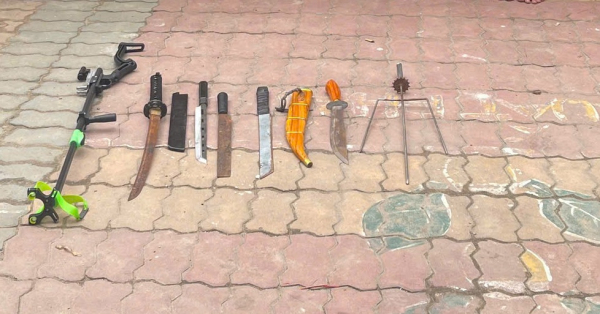 Số hung khí gồm dao tự chế, mã tấu, ná cao su bắn đạn bi... các đối tượng sử dụng.