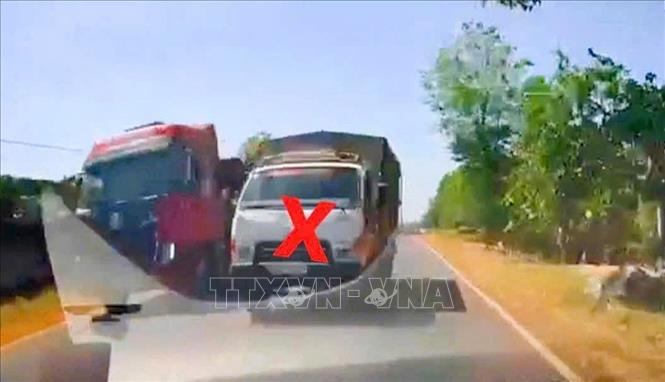 Xe tải vượt ẩu nguy hiểm, bị xử phạt. Ảnh: TTXVN phát