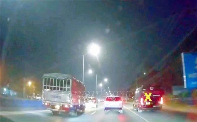 Xe ô tô vượt phải không đúng quy định, bị xử phạt. Ảnh: TTXVN phát