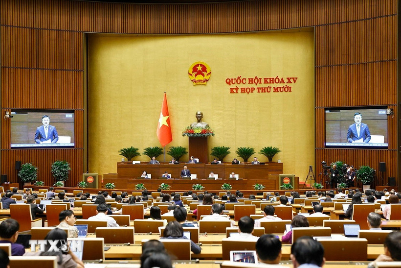 Phó Thủ tướng Chính phủ Lê Thành Long phát biểu giải trình, làm rõ một số vấn đề đại biểu Quốc hội nêu. (Ảnh: Doãn Tấn/TTXVN)