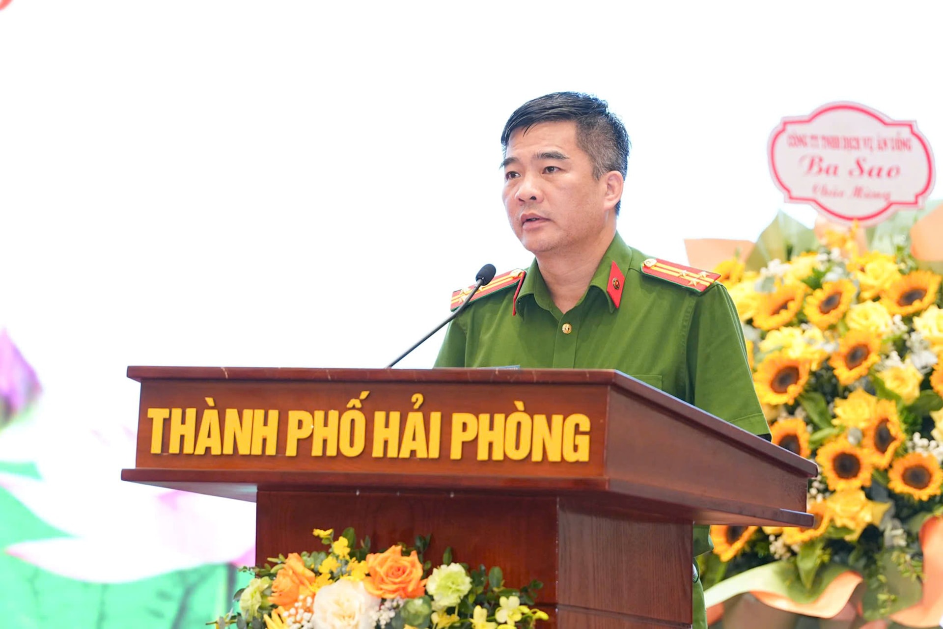 Đại diện Công an thành phố phát biểu.