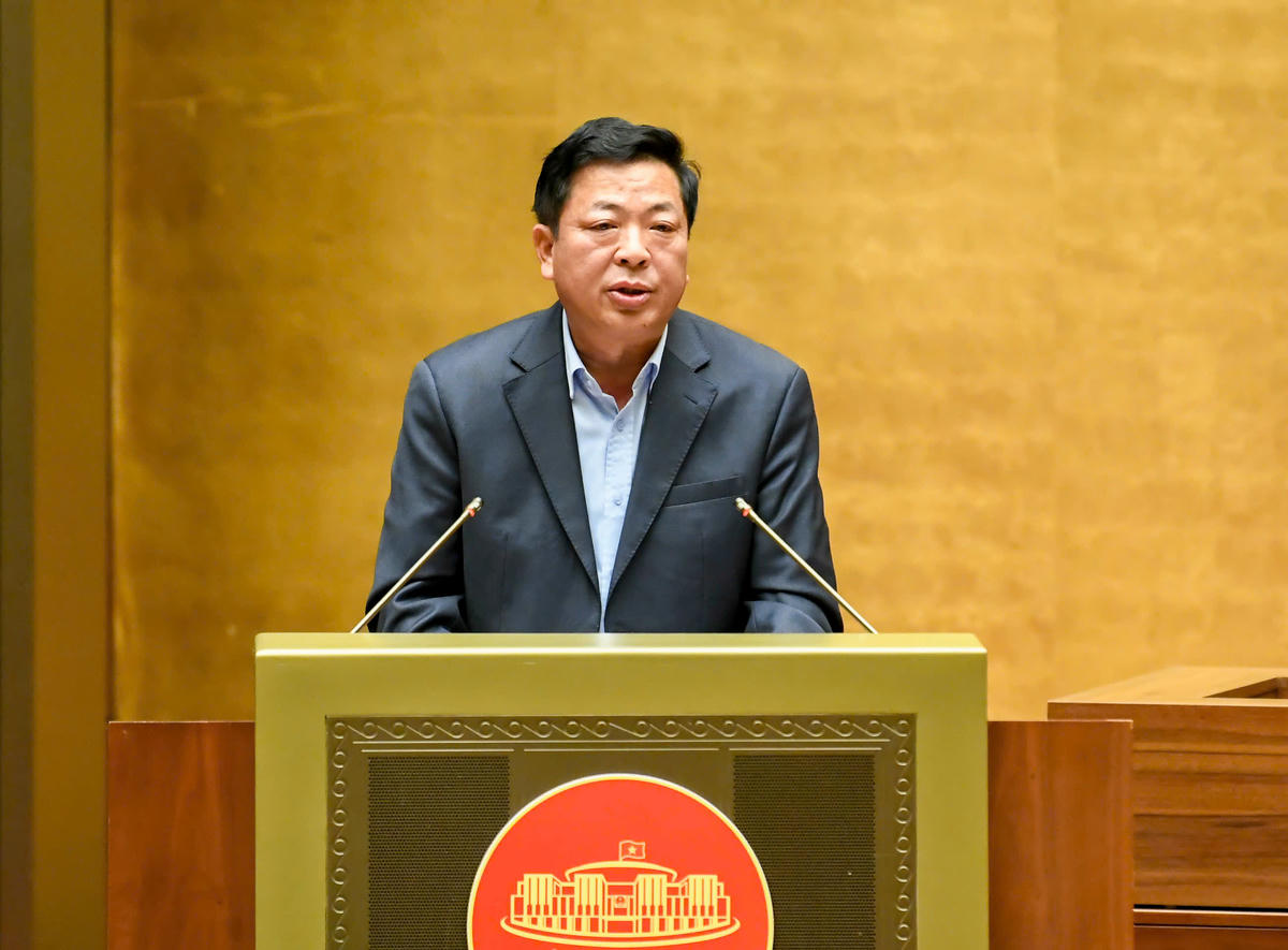 Chủ nhiệm Ủy ban Khoa học, Công nghệ và Môi trường Nguyễn Thanh Hải trình bày Báo cáo thẩm tra. Ảnh: Quang Vinh.