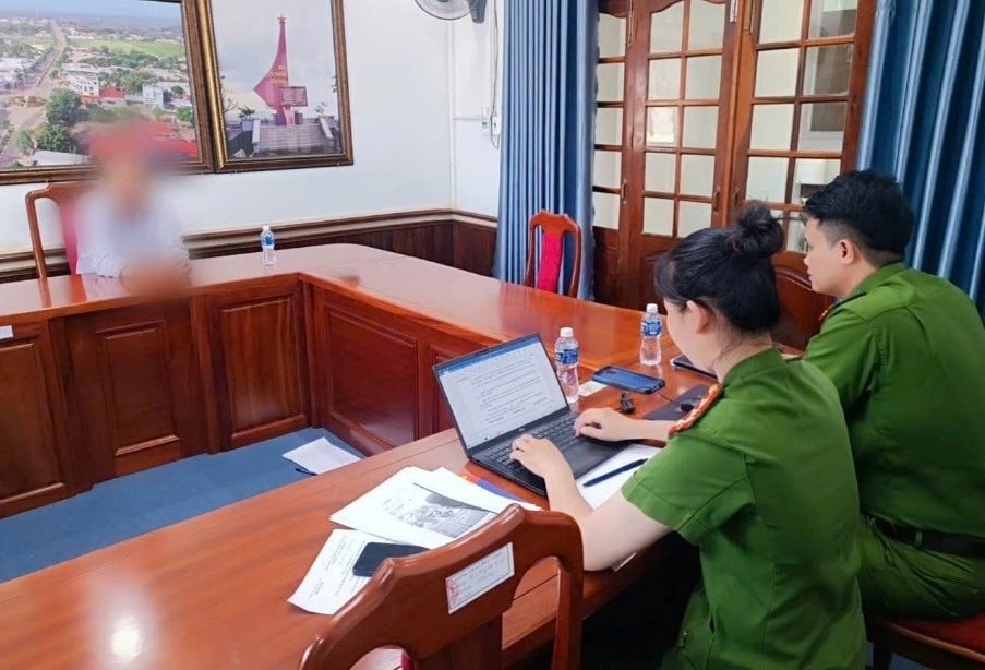 Công an làm việc với người chia sẻ video AI xuyên tạc lãnh đạo.