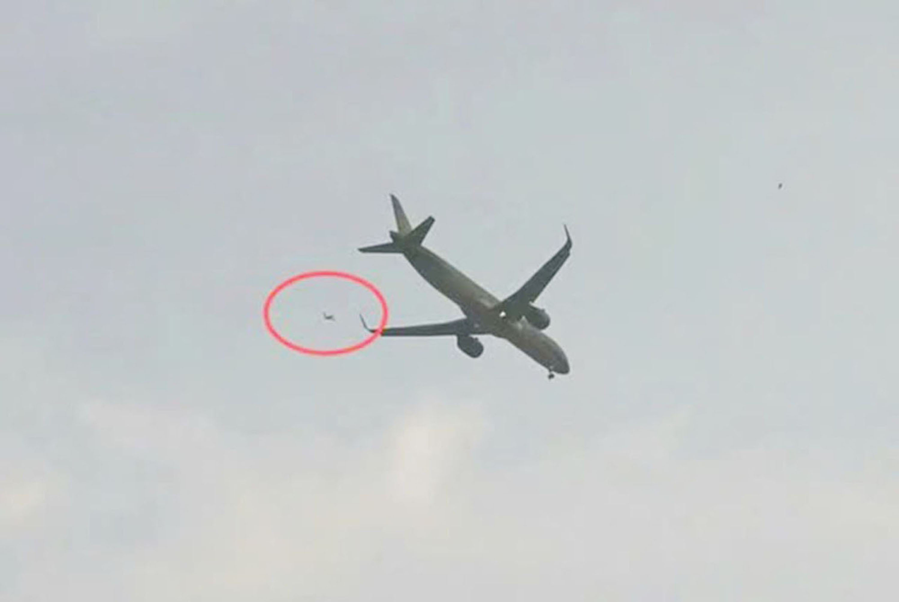 Thiết bị bay không người lái cách máy bay khoảng 60m. (Ảnh: Công an cung cấp)