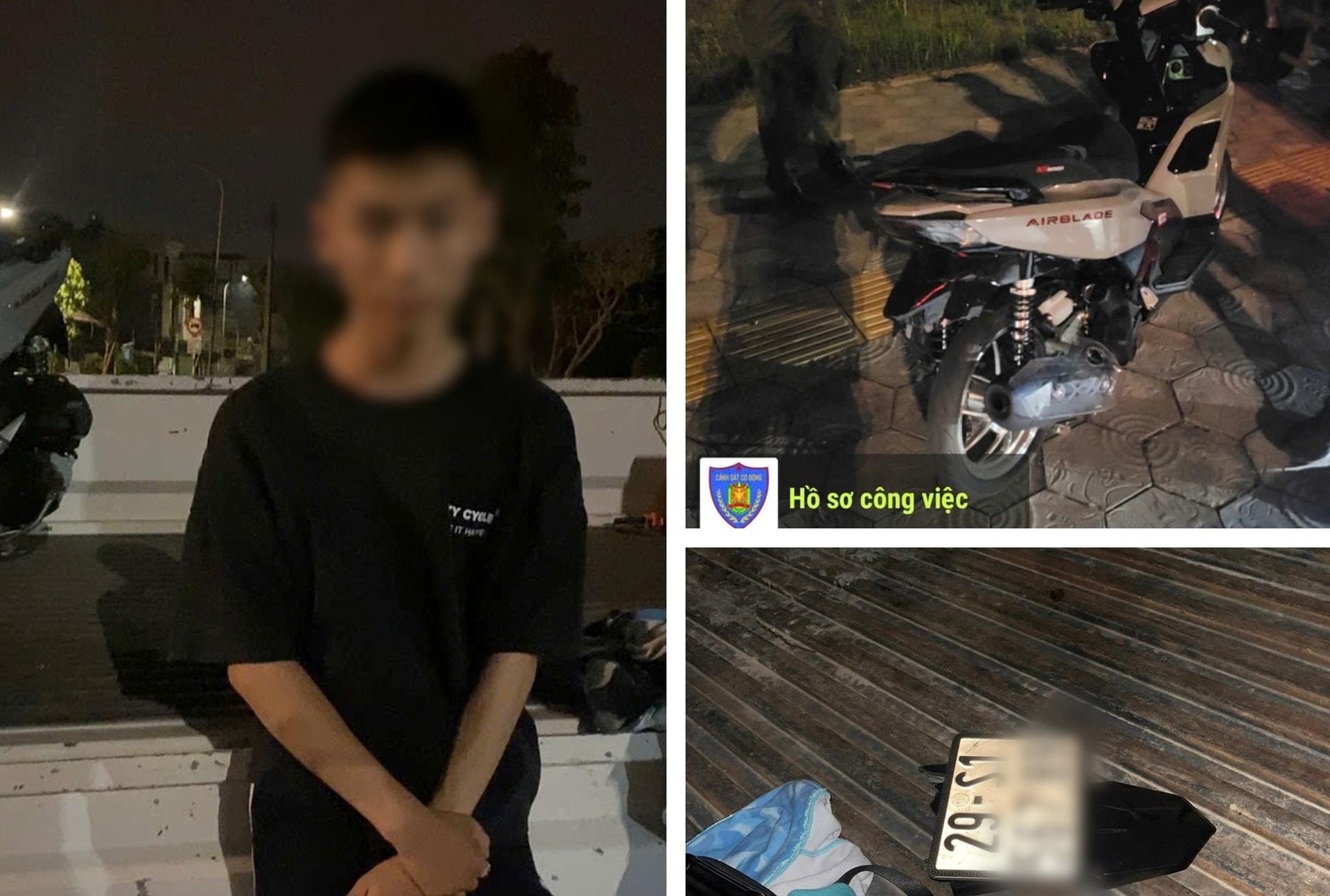 Lực lượng chức năng đã kiểm tra, bắt giữ L.C.T.V (sinh năm 2009, trú tại xã Yết Kiêu, Hải Phòng), điều khiển xe Airblade BKS 29S1-567.xx không đội mỹ bảo hiểm; còn một số đối tượng khác đã bỏ chạy.