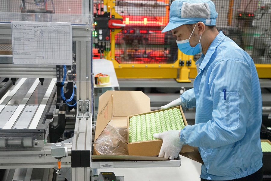 Lắp ráp pin xe điện tại Nhà máy VinFast Cát Hải (Hải Phòng).