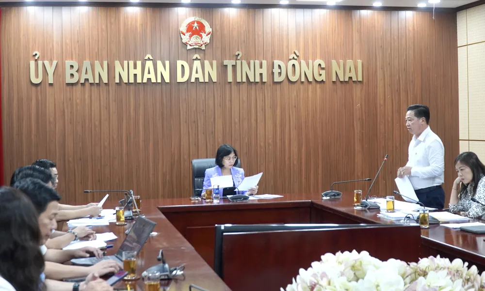 Ông Nguyễn Văn Thắng – Phó giám đốc Sở Nông nghiệp và Môi trường tỉnh Đồng Nai báo cáo tại buổi làm việc. Ảnh: VŨ HỘI.