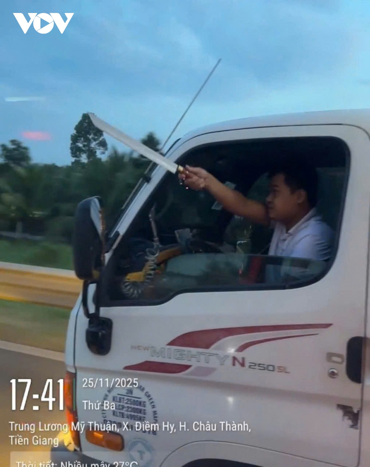 Trước đó lúc 17h41 ngày 25/11 trên mạng xã hội xuất hiện đoạn clip dài 44 giây, ghi lại tài xế xe tải biển số TP.HCM chạy trên cao tốc TP.HCM -Trung Lương-Mỹ Thuận-Cần Thơ hướng từ miền Tây đi TP.HCM. Khi đến đoạn thuộc xã Tân Phú, giáp ranh xã Bình Trưng (tỉnh Đồng Tháp), phương tiện này vượt lên áp sát một phương tiện khác có người quay clip.