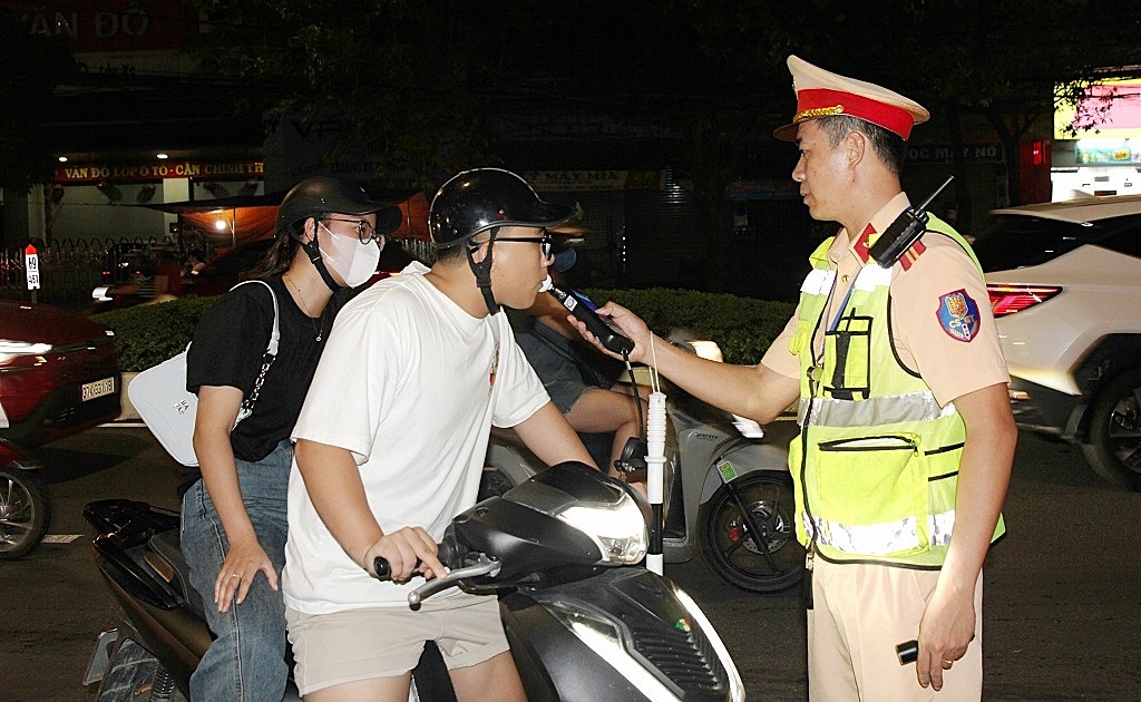 Kiểm tra vi phạm nồng độ cồn được lực lượng CSGT đồng loạt triển khai trên nhiều tuyến đường.