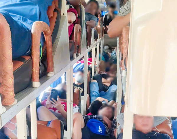 Hành khách nằm la liệt cả lối đi của xe khách.