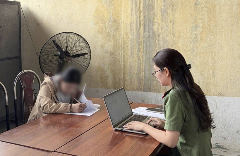 Công dân T.T.M viết cam kết không tái phạm tại cơ quan Công an. Ảnh: CACB