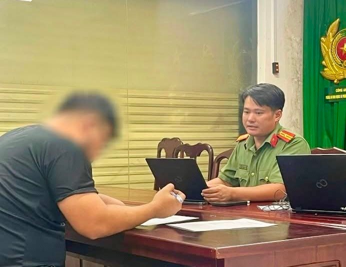 Công an làm việc với đối tượng vi phạm.
