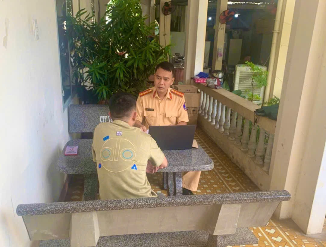 Tài xế Nguyễn Văn Thành làm việc với cán bộ Đội Cảnh sát giao thông đường bộ.