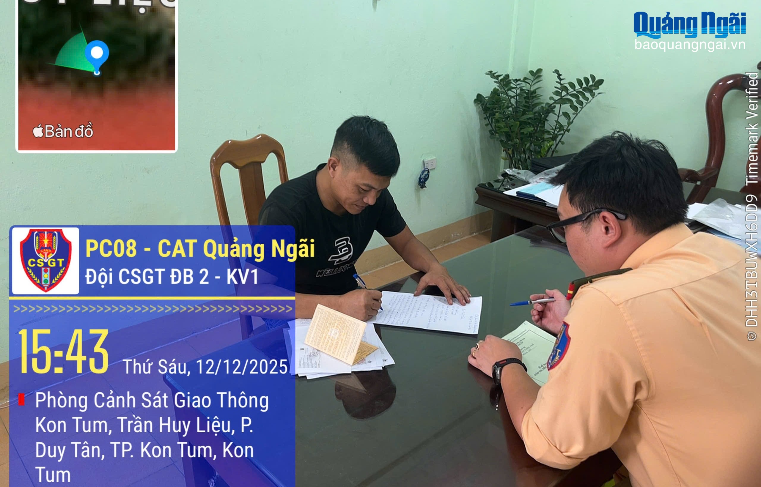 Lập biên bản xử phạt tài xế Trần Quốc Trung. Ảnh: ĐVCC