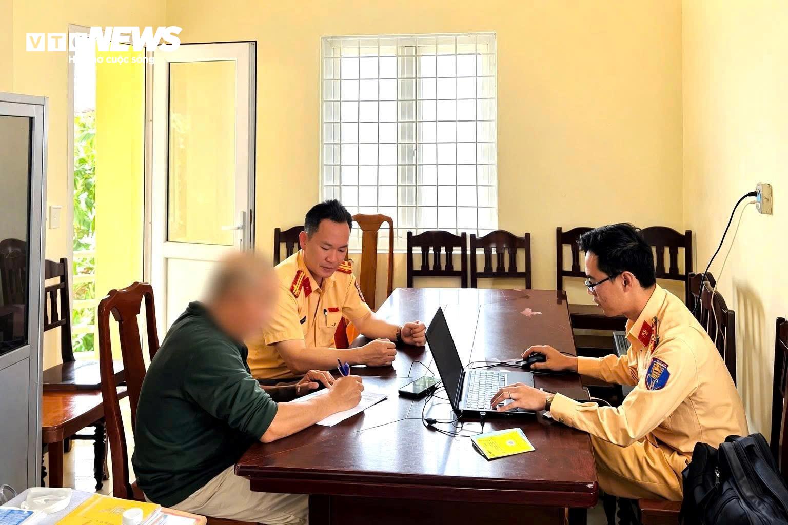 Cán bộ Phòng CSGT Công an tỉnh Quảng Trị làm việc và lập biên bản vi phạm với tài xế N.T.S. (Ảnh: CACC)