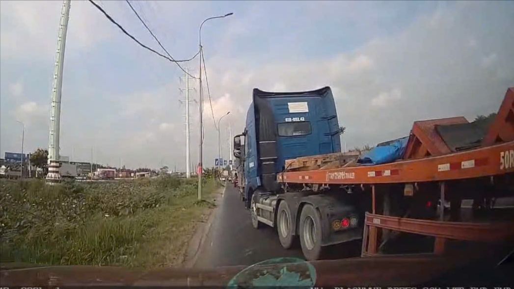 Ngày 12-4, mạng xã hội lan truyền clip ghi lại cảnh một xe đầu kéo khi lưu thông trên đường Võ Chí Công, phường Cát Lái, TP.HCM, bất ngờ đánh lái “ép” xe bán tải, suýt gây tai nạn giao thông.