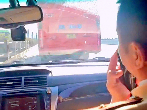 Hình ảnh xe khách không nhường đường cho đoàn xe ưu tiên đi làm nhiệm vụ.