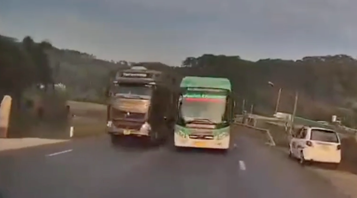 Camera hành trình của xe ô tô con ghi lại cảnh xe khách vượt ẩu.