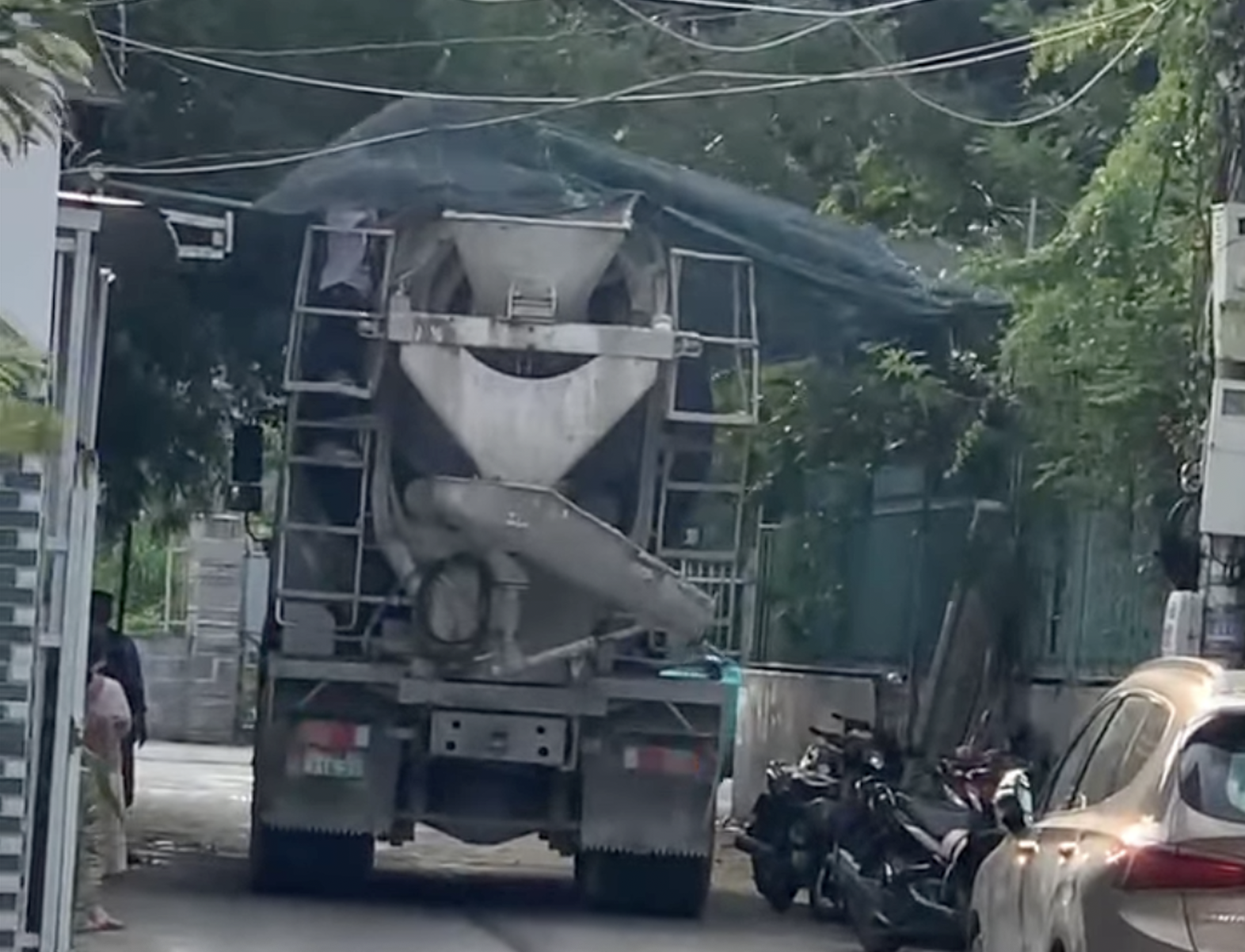 Xe trộn bê tông chạy vào hẻm. Ảnh: CACC