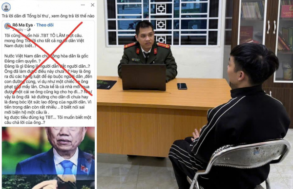 Nội dung xuyên tạc mà T. chia sẻ về trang Facebook cá nhân (ảnh trái) và T. tại Công an phường Lào Cai.