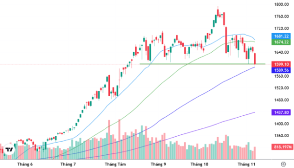 Sau chuỗi “bull-trap” kéo dài, việc VN-Index thủng ngưỡng 1.600 điểm trong phiên cuối tuần là diễn biến không quá bất ngờ, bởi đây là kịch bản đã được tôi đề cập từ những lần trao đổi trước. Hiện chỉ số đang tiệm cận vùng MA100 – vùng hỗ trợ kỹ thuật mạnh thường tạo ra các nhịp hồi phục ngắn hạn khi thị trường rơi sâu. Trong bối cảnh tâm lý nhà đầu tư bị thử thách, khả năng xuất hiện nhịp hồi kỹ thuật từ vùng này là khá cao.