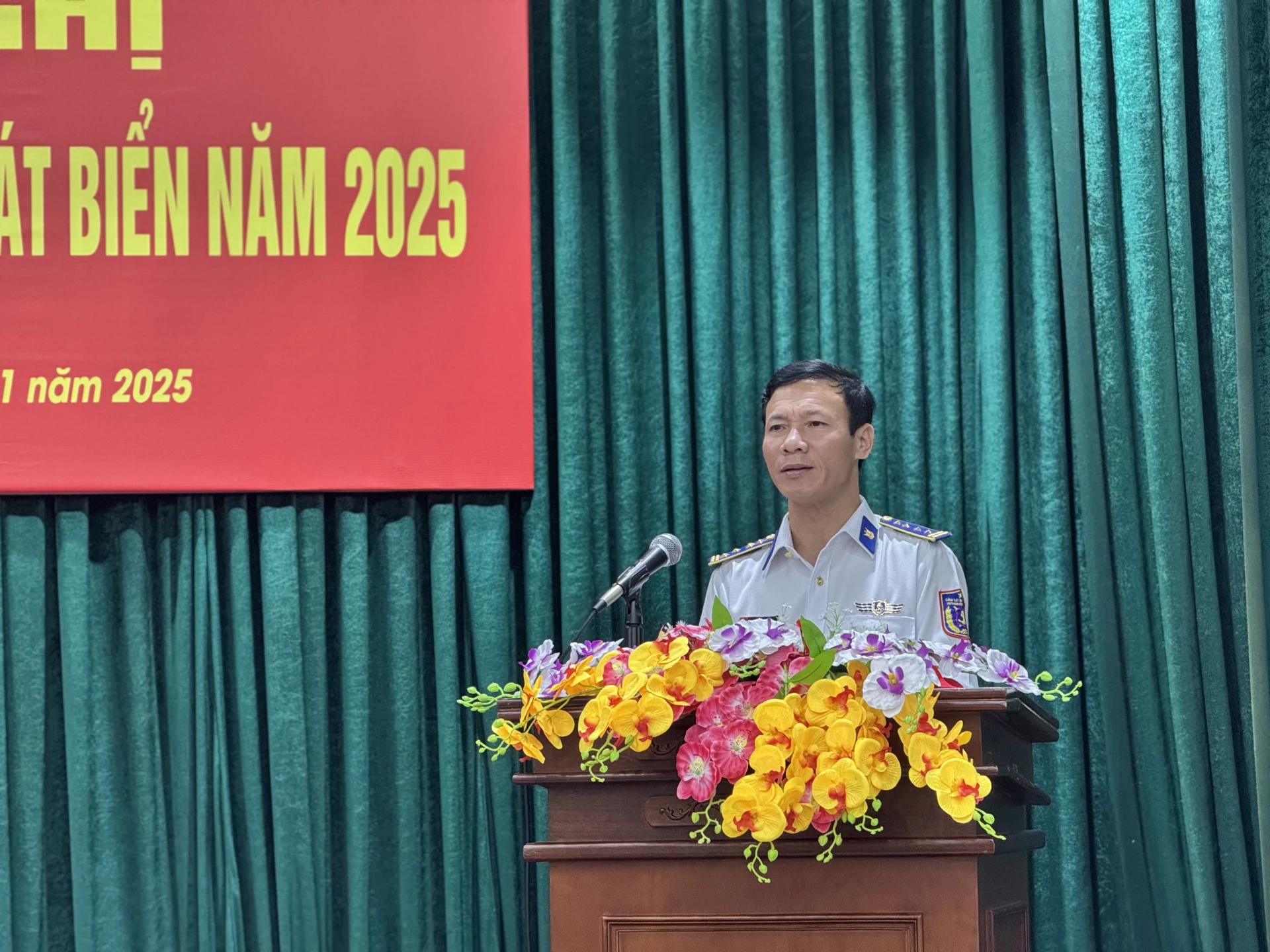 Đại tá Trần Hồng Quế, Phó Chính ủy Bộ tư lệnh Vùng Cảnh sát biển 2 chỉ đạo tại hội nghị - Ảnh: Mai Linh