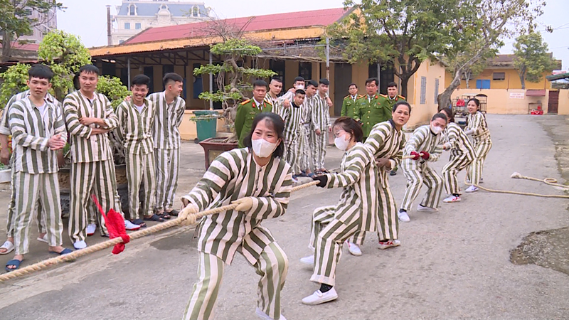 Không chỉ gói bánh chưng, giữa sân Trại tạm giam, trong cái se lạnh của những ngày Tết, tiếng reo hò cổ vũ vang lên rộn ràng. Những hoạt động thể thao như kéo co, bóng chuyền... đã trở thành hoạt động thường niên mỗi dịp Tết đến xuân về. Không chỉ giúp các phạm nhân rèn luyện sức khỏe, đây còn là dịp để các phạm nhân giao lưu, giải tỏa tâm lý và cảm nhận không khí mùa xuân về.