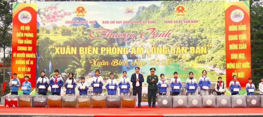 Chiều 5/2, Ban Chỉ huy Bộ đội Biên phòng tỉnh Cao Bằng (Bộ Chỉ huy Quân sự tỉnh Cao Bằng) phối hợp với chính quyền xã Phục Hòa và xã Bế Văn Đàn tổ chức Chương trình “Xuân Biên phòng ấm lòng dân bản” Xuân Bính Ngọ năm 2026.