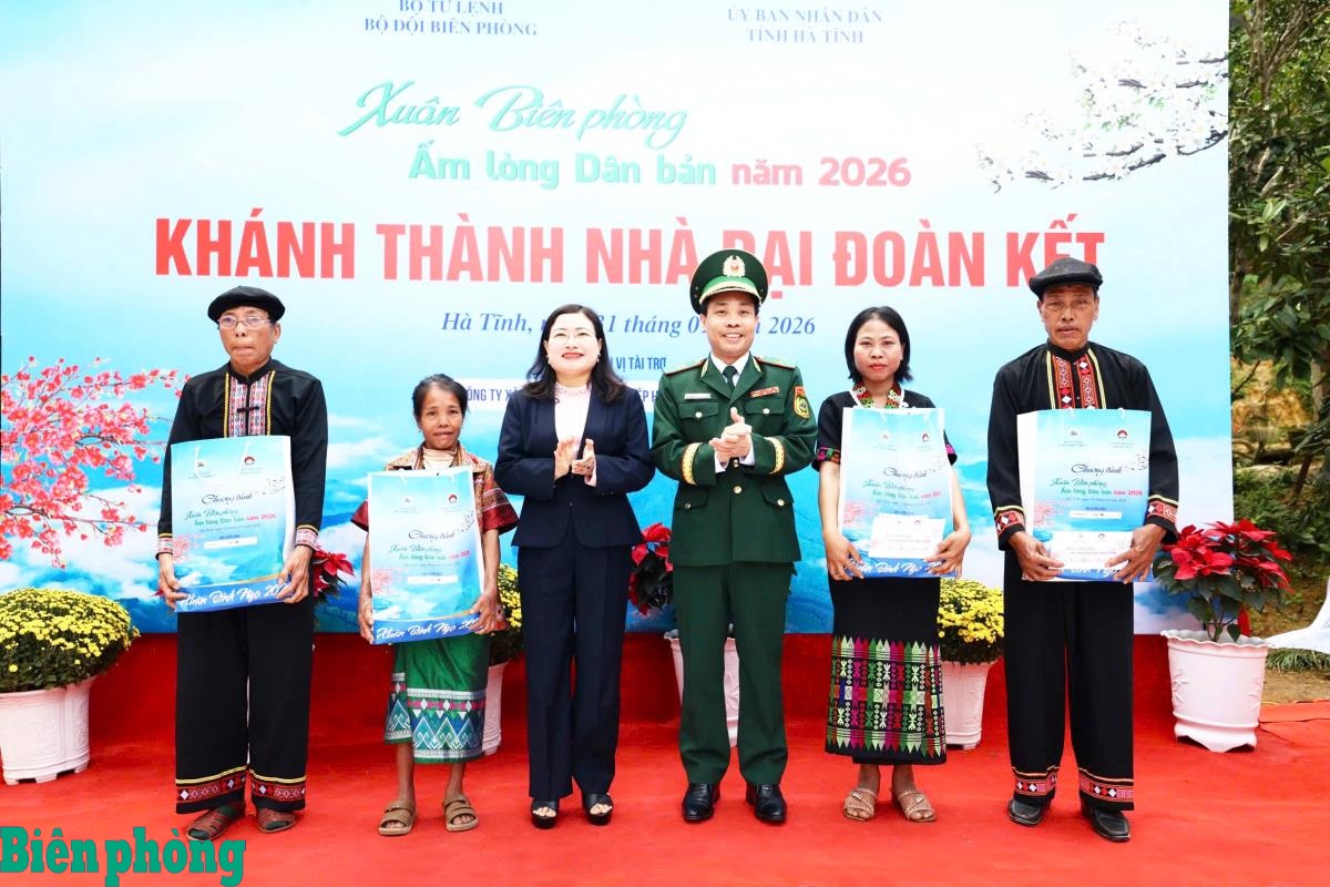Trong đó, Chương trình “Xuân Biên phòng ấm lòng dân bản” năm 2026, Bộ Tư lệnh Bộ đội Biên phòng phối hợp Tỉnh ủy, Ủy ban Nhân dân tỉnh Hà Tĩnh tổ chức tại xã Hương Xuân đã khám bệnh, cấp thuốc miễn phí cho hơn 700 người dân; tặng gần 1.000 suất quà, gần 200 suất học bổng “Nâng bước em tới trường-Con nuôi đồn biên phòng”, 4 căn nhà “Mái ấm biên cương”, 31 con bò giống cho đồng bào khu vực biên giới. Tổng trị giá hơn 17 tỷ đồng.