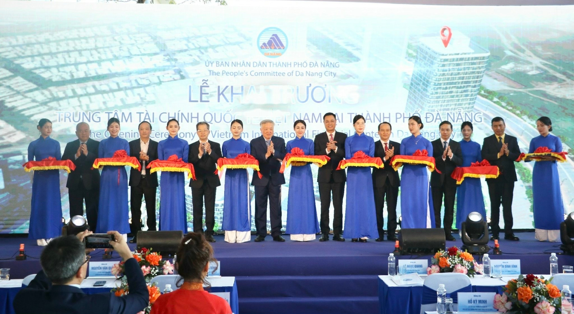 Lãnh đạo Trung ương và thành phố thực hiện nghi thức khai trương Trung tâm tài chính quốc tế Việt Nam tại thành phố Đà Nẵng.