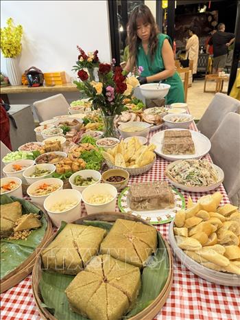 Tết hiện hữu qua từng món ăn không thể thiếu trong mâm cơm ngày Tết: bánh chưng, dưa món đủ sắc màu – những hương vị gợi nhắc ký ức quê nhà. Tết nơi xa xôi vì thế không chỉ là dịp đón Năm mới, mà còn là lúc để những trái tim Việt tìm lại cảm giác gia đình, sẻ chia và gắn bó bên nhau.