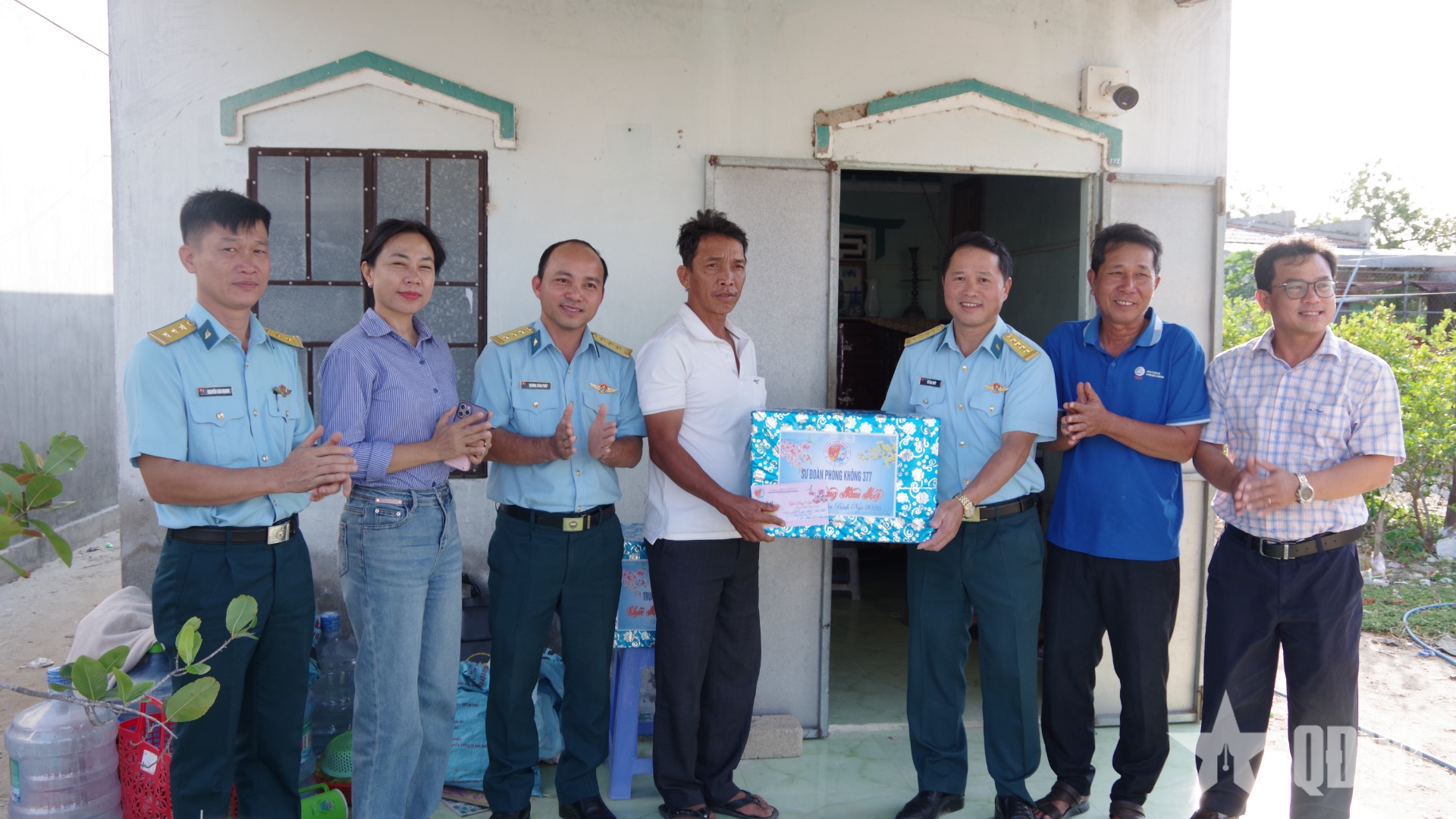 Đại tá Vũ Cao Thép, Bí thư Đảng ủy, Chính ủy Sư đoàn 377 thăm hỏi, tặng quà gia đình chính sách.