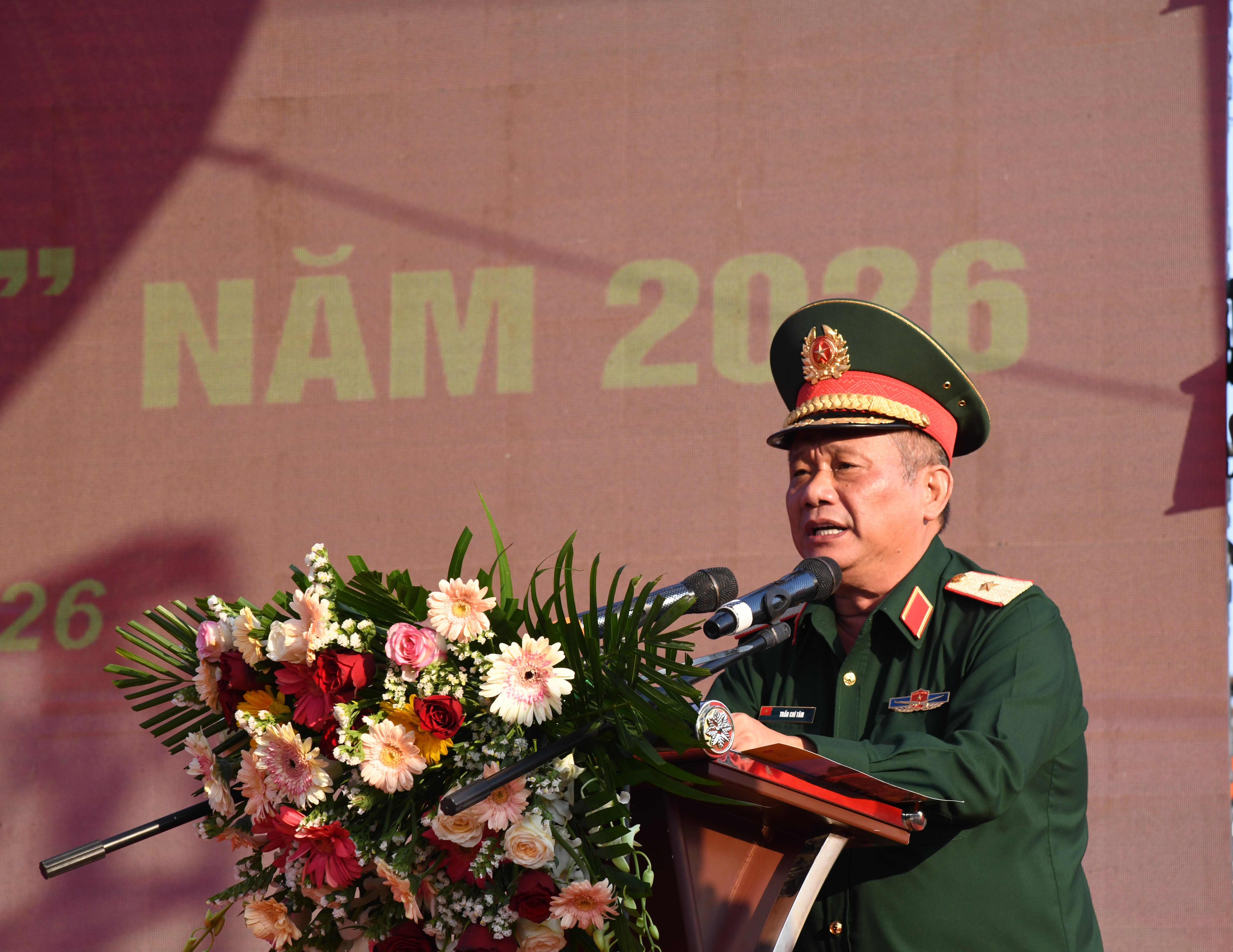 Thiếu tướng Trần Chí Tâm, Phó chính ủy Quân khu 7 phát biểu khai mạc chương trình