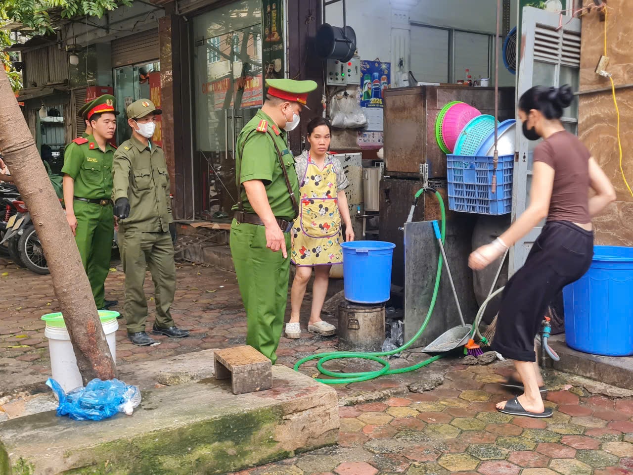 Lực lượng chức năng tuyên truyền, nhắc nhở tại ngõ 38 Xuân La. Ảnh: PV