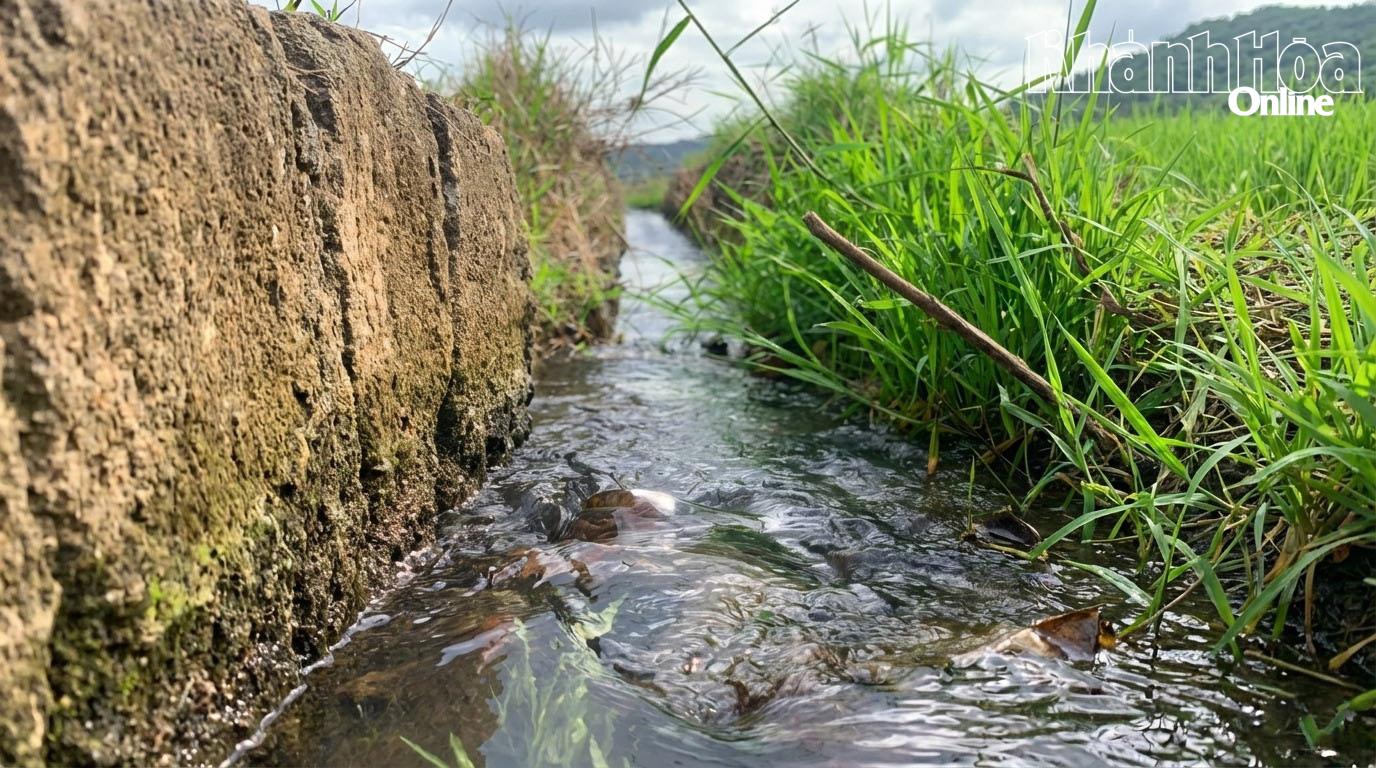 Dòng nước mát lành tưới tắm cho ruộng lúa.