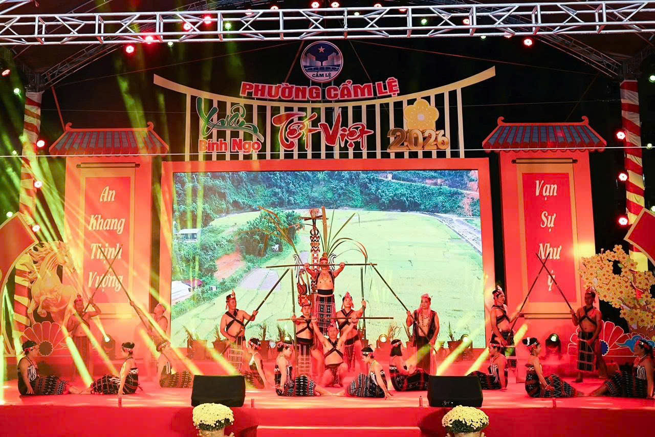 Quảng bá văn hóa đồng bào Cơ Tu của xã Thạnh Mỹ tại Chương trình Tết Việt của phường Cẩm Lệ, đơn vị kết nghĩa. Ảnh: DŨNG LOAN