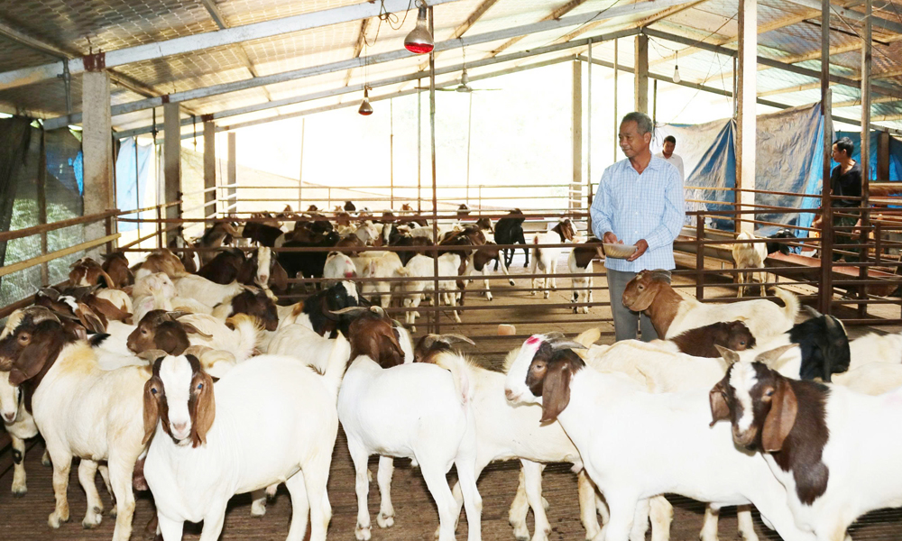 Nhờ điều kiện tự nhiên thuận lợi, mô hình nuôi dê phát triển mạnh. Toàn xã hiện có gần 6.000 con dê, tăng gấp đôi so với năm 2020. Gia đình ông Kiên là một trong những hộ tiên phong nuôi theo hướng bán công nghiệp, chuyển sang giống dê ngoại, giúp tăng trọng nhanh, chất lượng thịt đồng đều.