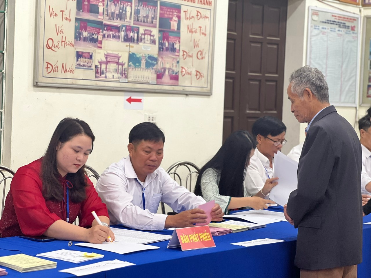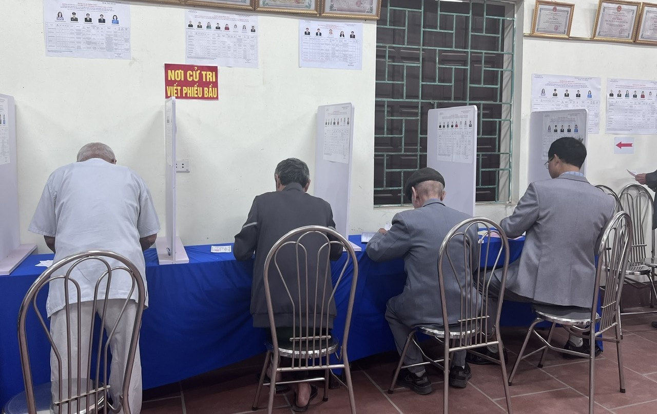 Khoảnh khắc cử tri xã Xuân Mai bỏ phiếu bầu đại biểu Quốc hội và đại biểu HĐND các cấp.