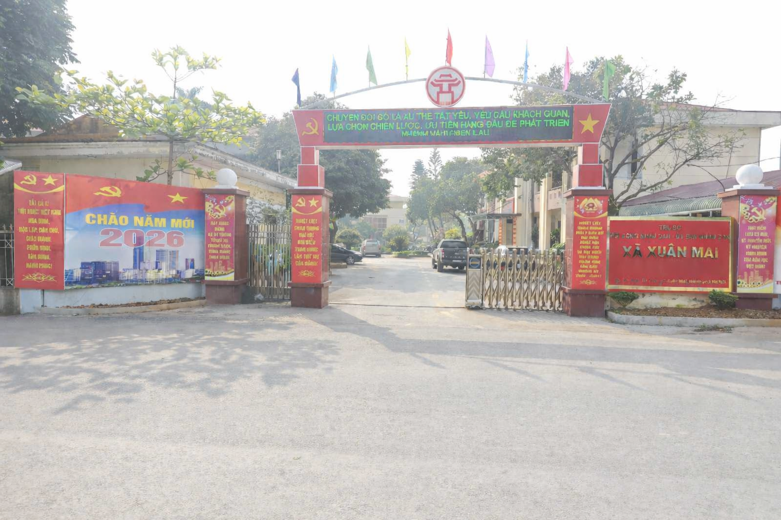 Trụ sở UBND xã Xuân Mai treo cờ, băng rôn chào mừng ngày bầu cử. Ảnh: PV