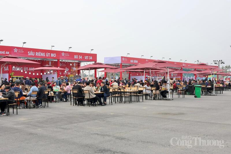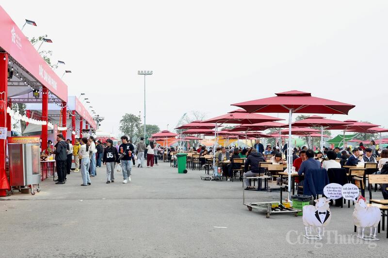 Phân khu Xuân Mỹ Vị tại Hội chợ Mùa Xuân 2026 thu hút du khách dừng chân sau khi tham quan, mua sắm tại các phân khu. Ảnh: Quỳnh Trang